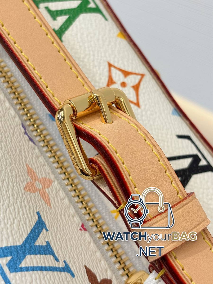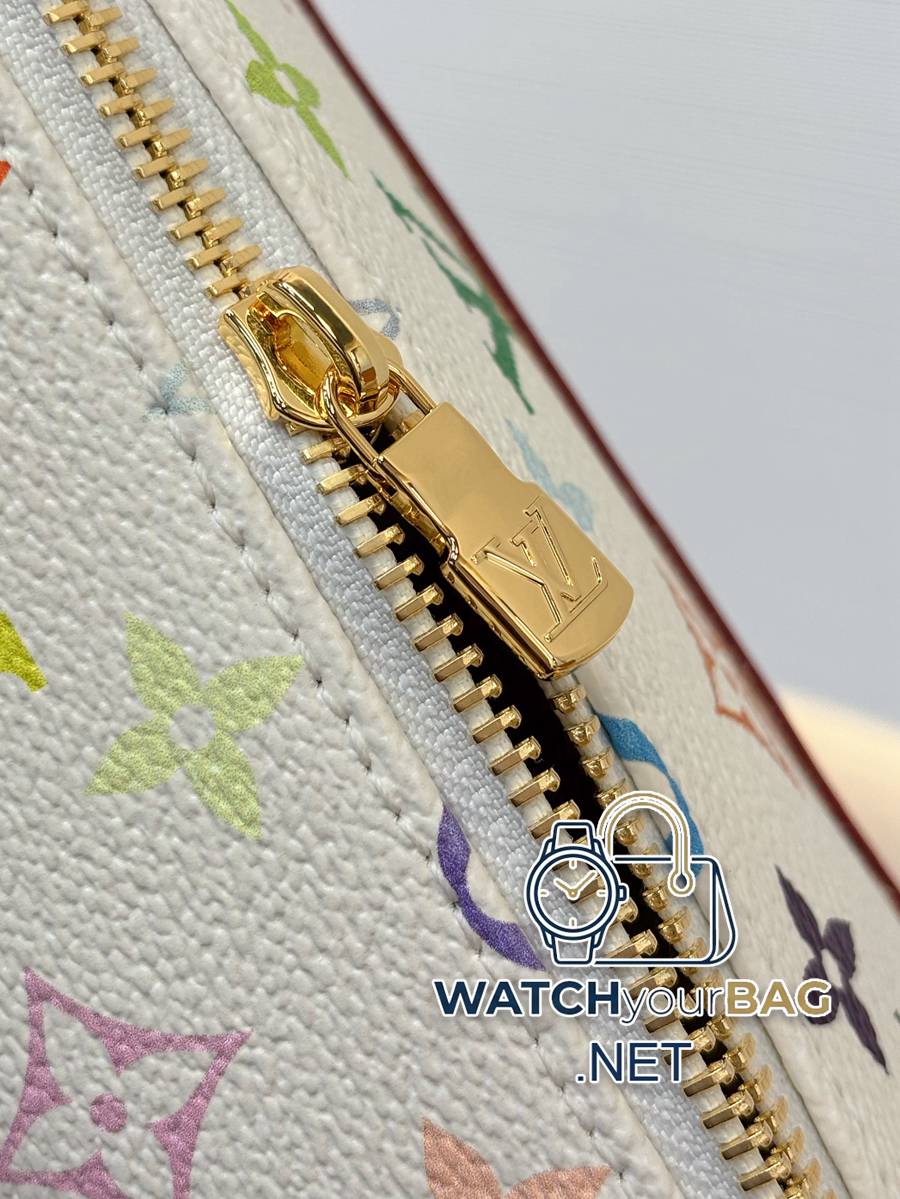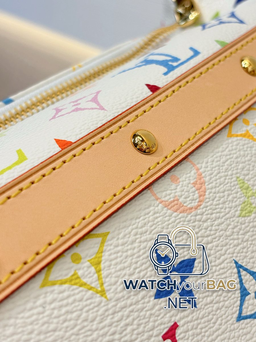 Model: M27900 Size: 22×13.5x12cm The white Cruiser toiletry bag is made of Monogram Multicolore coated canvas, which shows the creative resonance of Louis Vuitton and Takashi Murakami in the 2003 collaboration series in a colorful manner. Calf leather trim and lustrous rivets accentuate the sophisticated construction, subtly referencing the inspiration for the classic Cruiser bag. Fabric lining makes cleaning easy, and interior slip pockets make it easy to store on-the-go essentials