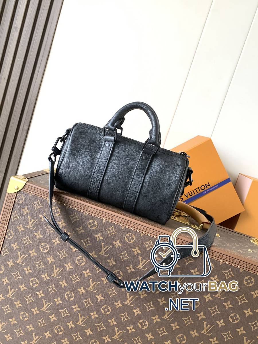 M28369 Top original order transcoding chip 163C men’s bag speedy pillow bag KEEPALL BANDOULIÈRE 25 handbag This Keepall Bandoulière 25 handbag is made of Monogram Midnight xl coated canvas embellished with deep Monogram printing, showing off a confident style. The smart urban silhouette features leather trim and matte zippers. The top handle and wide removable and adjustable fabric shoulder strap allow for comfortable cross-body and hand carry. Dimensions: 15 x 11 x 25 cm. (height x width x length)