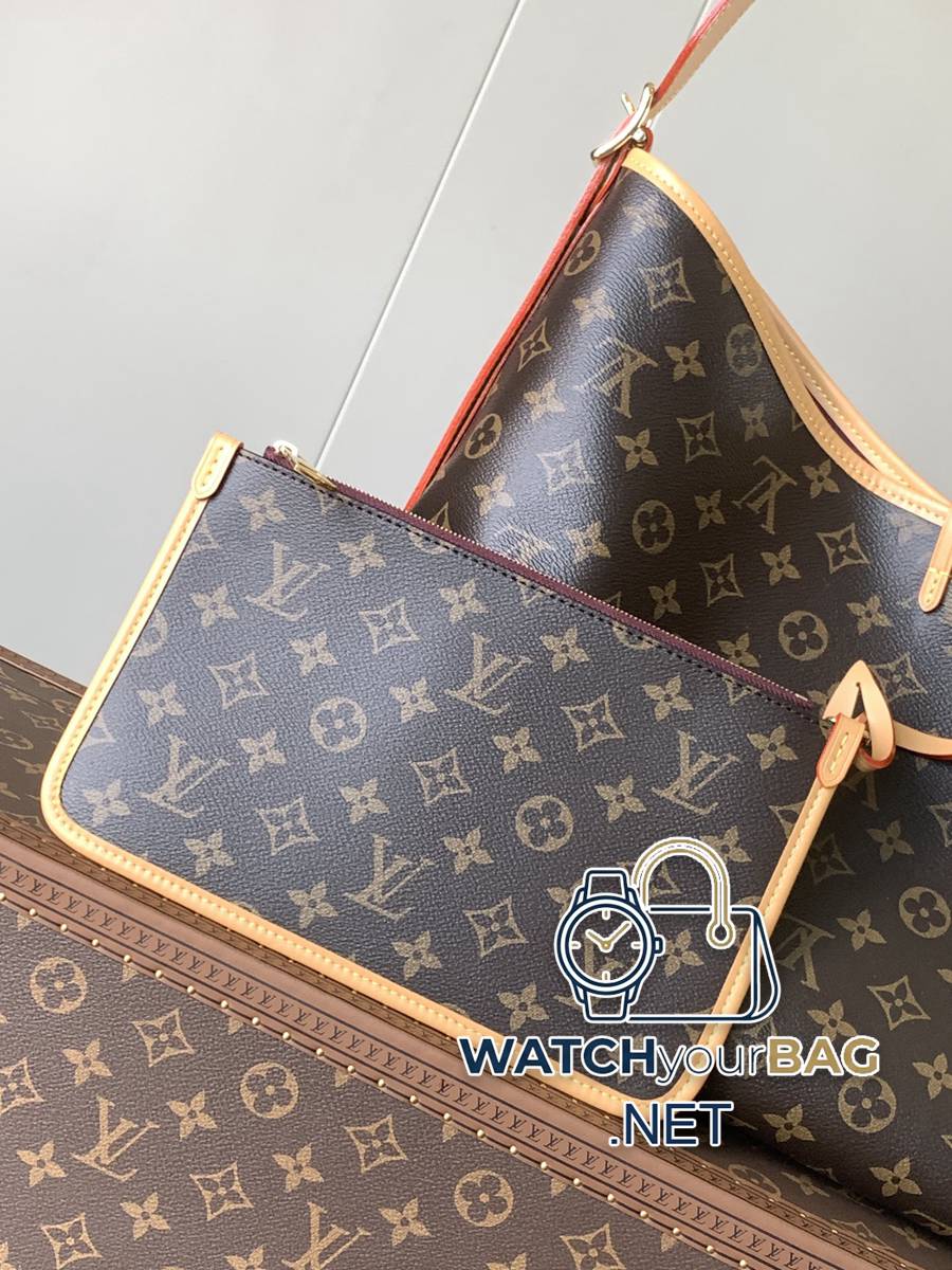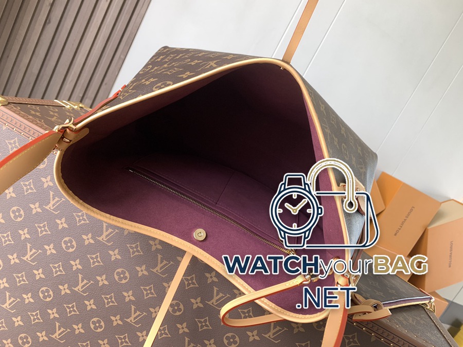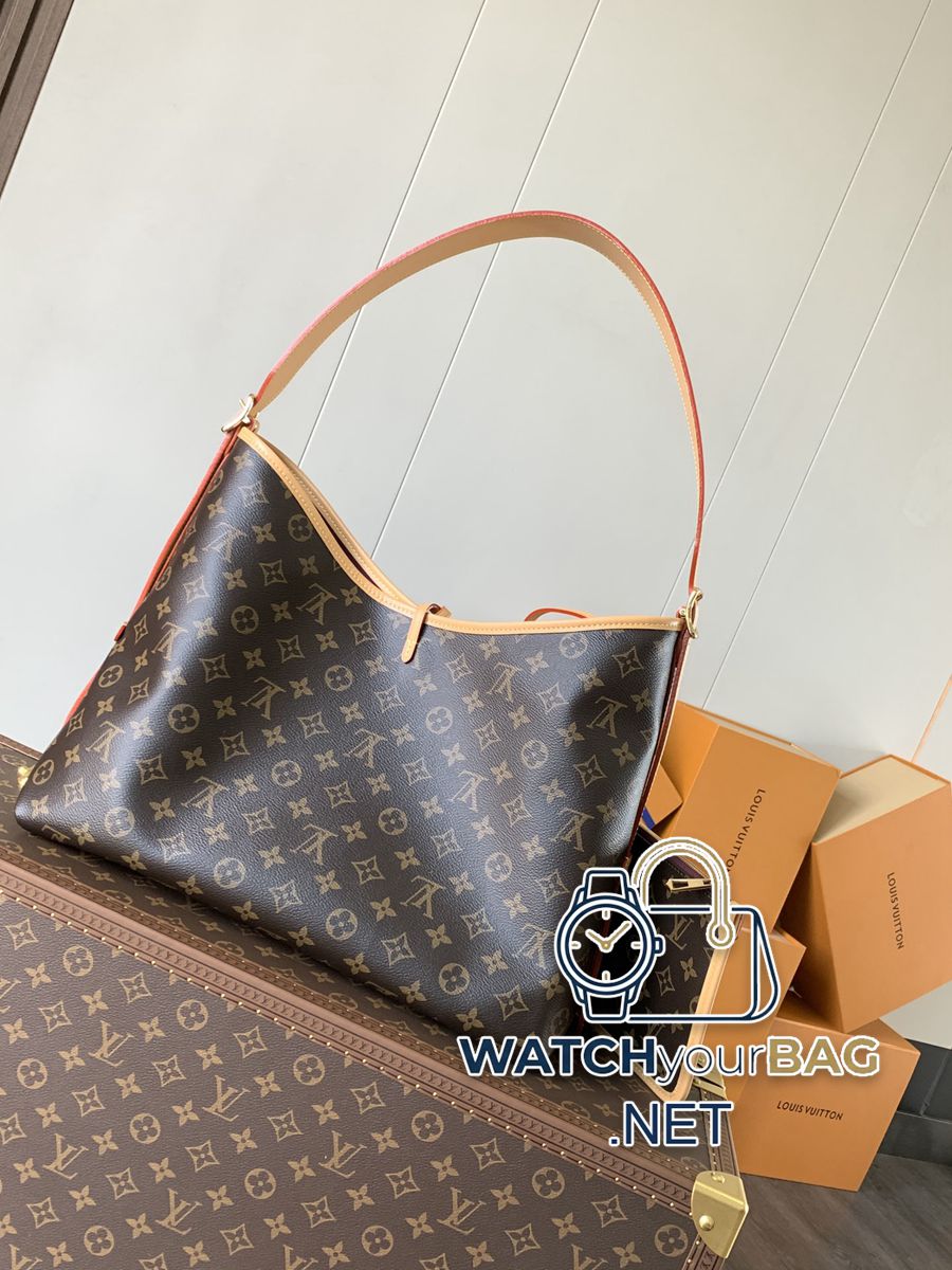Exclusive real shot, inside version M46197 Louis Vuitton launches new CarryAll medium handbag, with Monogram canvas and leather trimming to create a body-fitting design. There’s a zipped pocket inside the ample space, and a detachable zipped clutch adds a functional element, with a buckle-adjustable handle. Dimensions: 39.0 x 30.0 x 15.0 cm (length x height x width)