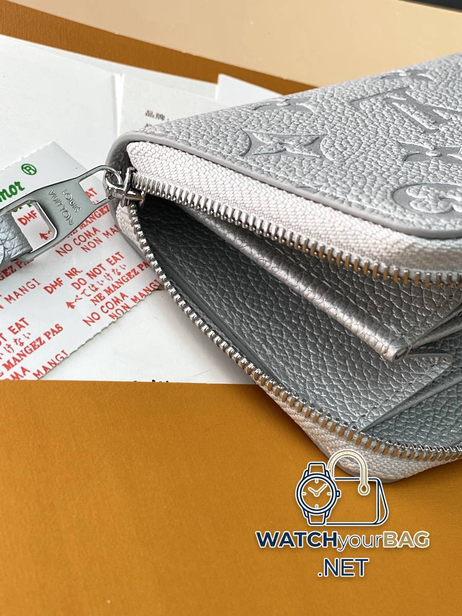 M60574 Pearlescent Silver! This zipper coin purse provides the most ideal choice for urbanites. The bag is compact and compact, with a bright silvery white color that highlights its exquisite texture. Can be used to hold change, credit cards and folded banknotes. Even if the pockets on your body are small, you can easily fit it into it. 11 x 8 x 1 cm.