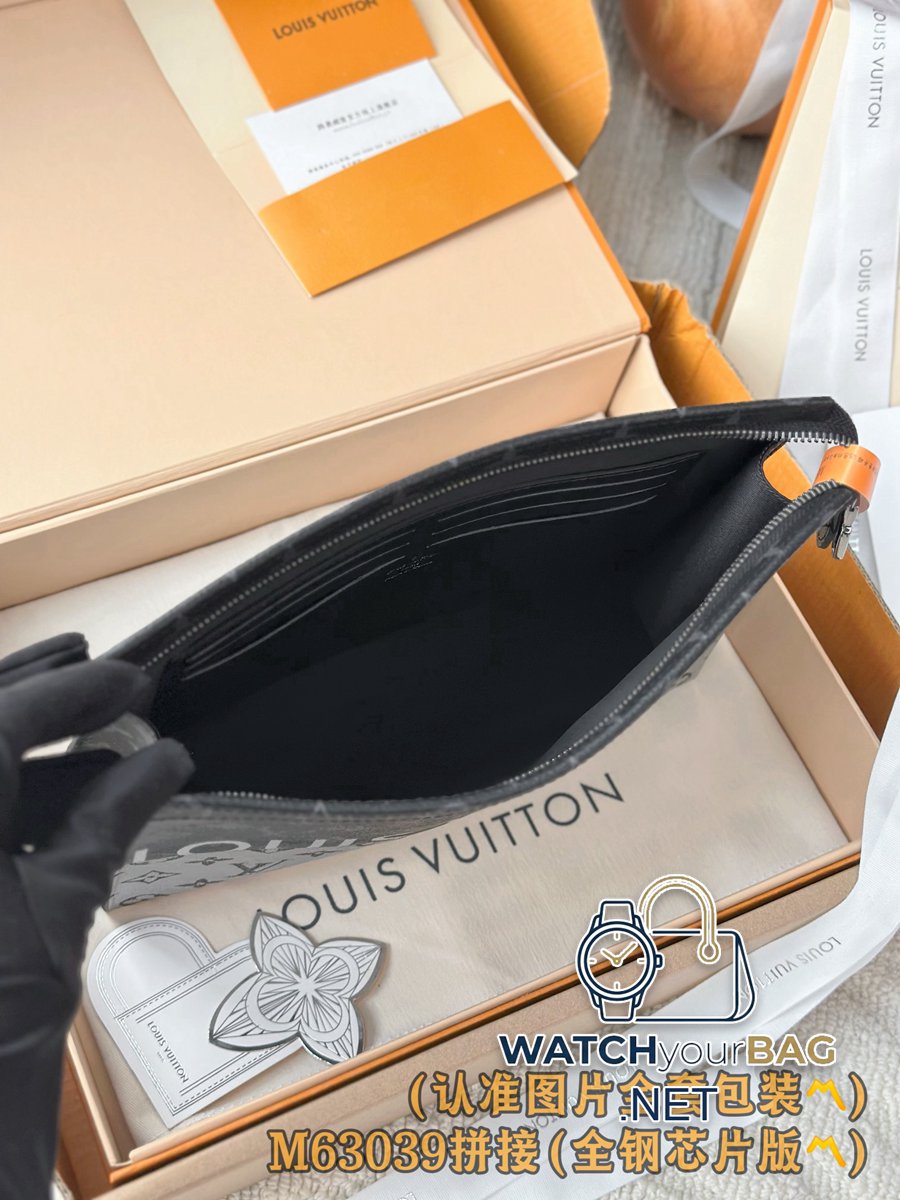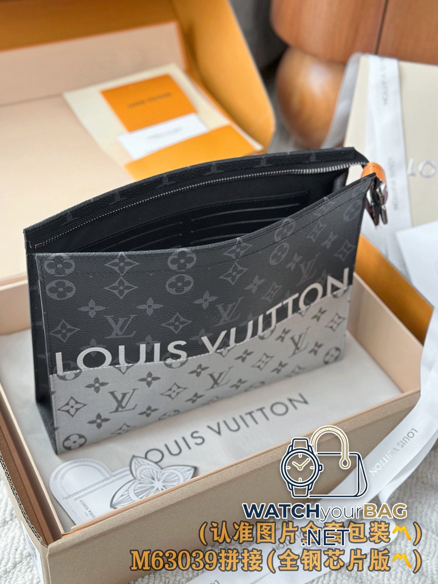 M63039 splicing (〽️Grade A all-steel〽️) personalized customization! Transcoding chip, Pochette Voyage Medium Handbag Cut from the new signature black and gray Monogram Eclipse canvas, this tough new Pochette Voyage Medium Handbag can easily store personal belongings. 27 x 21 x 6 cm (length x height x width)
