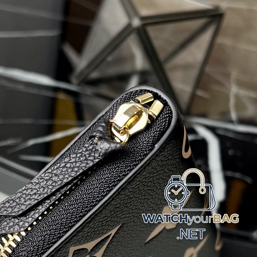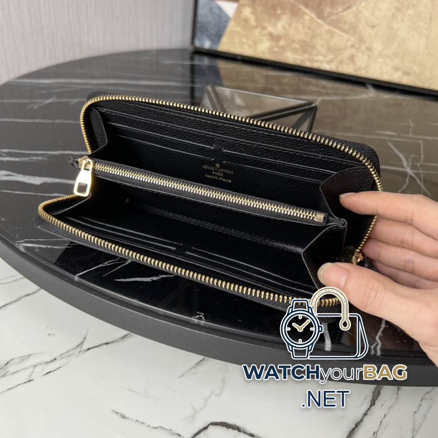 Chip version M82338 black silk screen This Clémence wallet is reinterpreted in Monogram Empreinte soft grain leather, creating an elegant style with a nautical-style two-tone design. The slim silhouette unzips to reveal a cleverly designed interior, packed with practical features including a zipped coin compartment and eight card slots, while matching leather zip pulls add a sophisticated touch. 20 x 9 x 2 cm (length x height x width)
