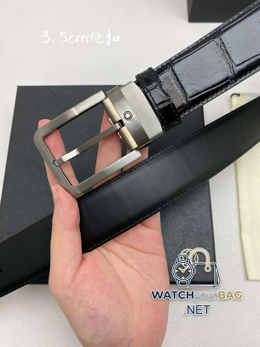 Montblanc 3.5cm wide, made of first-layer cowhide, fine pin buckle, free-cut business casual belt