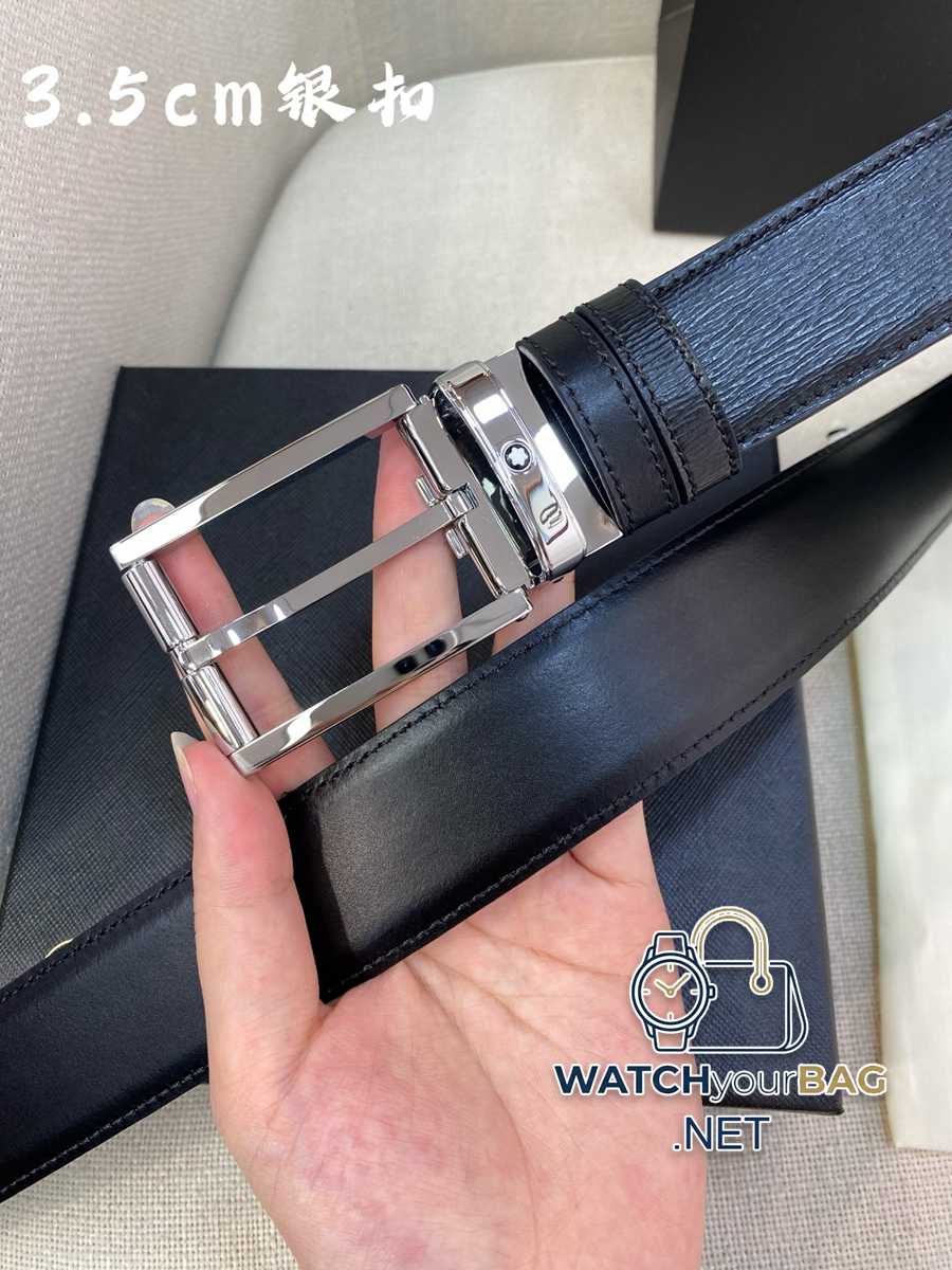 Montblanc 3.5cm wide, made of first-layer cowhide, fine pin buckle, free-cut business casual belt