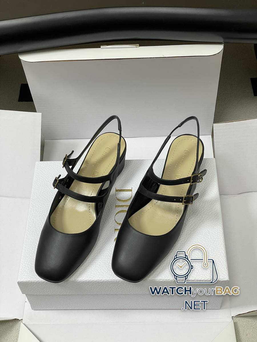 26ss spring and summer new Dior D-Cherie slingback high heels CD hardware buckle two-strap Mary Jane shoe buckle back empty thick heel sandal This Dior Cherie slingback high-heeled shoe reinterprets the classic Mary Jane shoe with an elegant shape. Featuring an upper in soft black calfskin leather, the front features adjustable double laces and is embellished with an interlocking gold-finish metal CD logo inspired by the Dior archives. Paired with a 4cm thick heel, it can add elegance to any look. Cute and playful, age-reducing without losing the sense of high-end ~ the sense of sight of a wealthy daughter ~ elegant and ladylike style! The upper foot is super beautiful ~ showing elegance. A must-have item for exquisite little fairies. Upper: Customized calfskin lining. Foot pads: Sheepskin. Sole: Italian A-grade genuine leather. Heel height: 4cm. Size: 35-39 (40.41.42 custom-made, non-refundable)