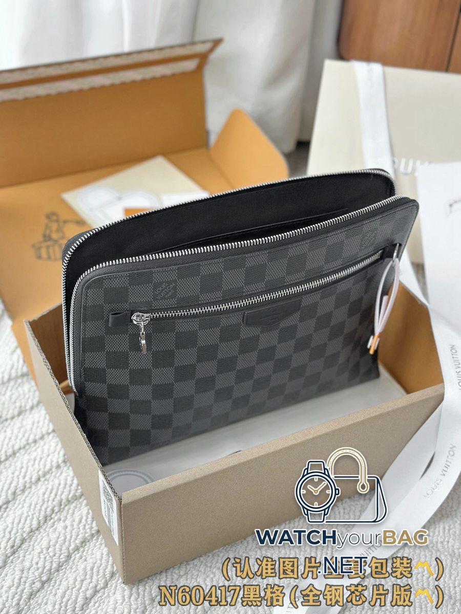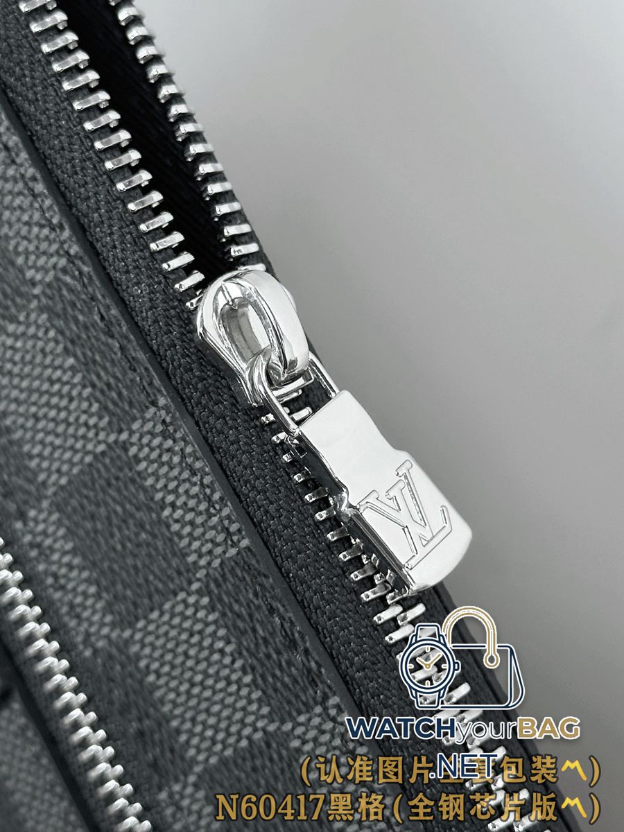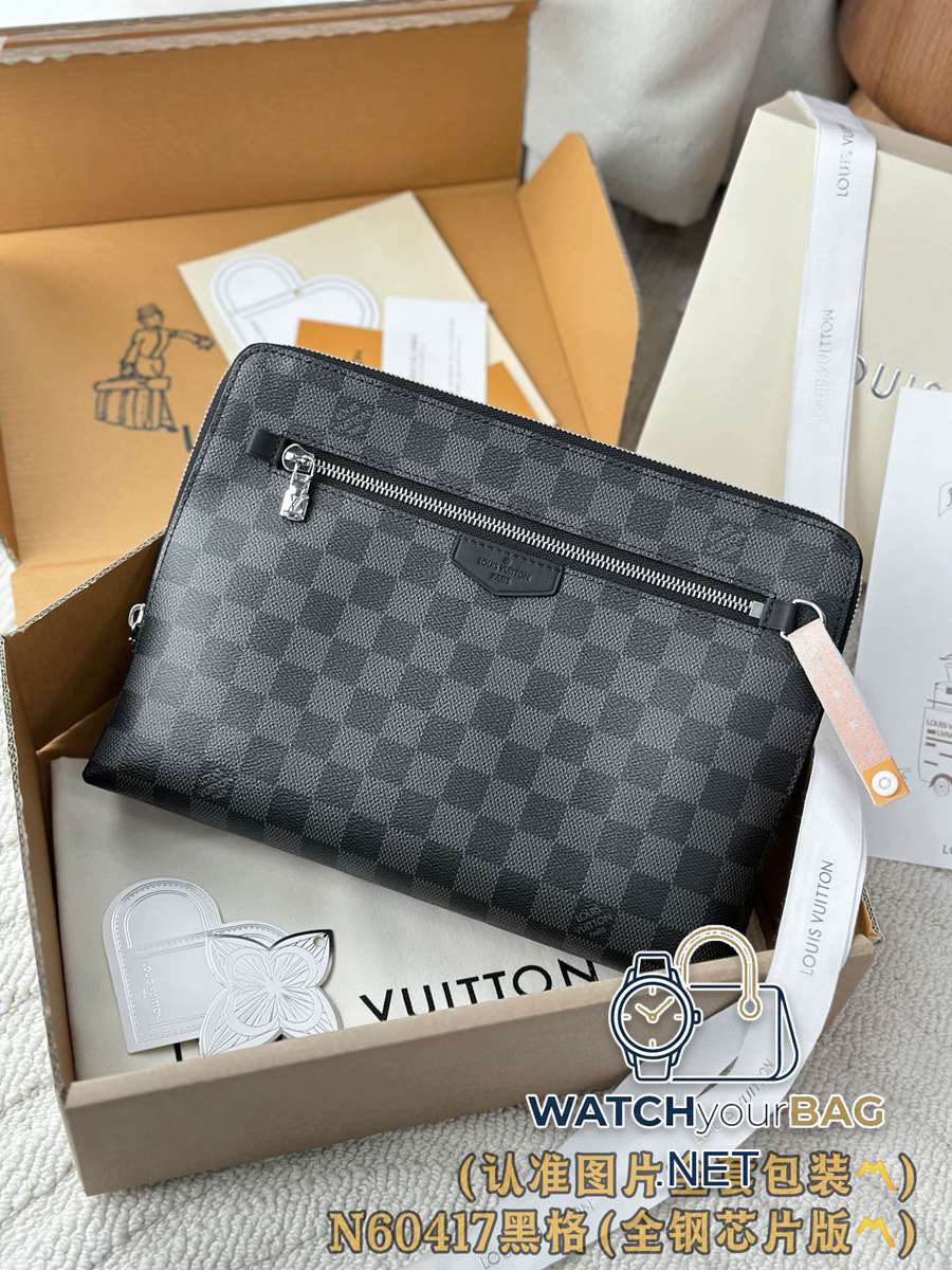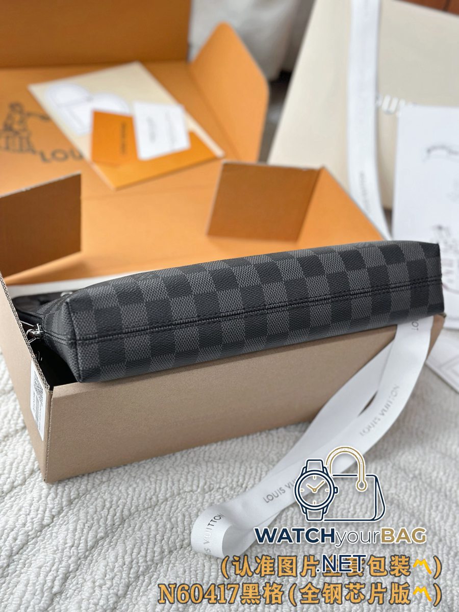 N60417 Heige (〽️A-grade all-steel version〽️) personalized customized version! The transcoding chip and New Pouch clutch are made of Damier. Graphite canvas and card slots, and are embellished with Louis Vuitton logo embossed labels, showing the fusion of function and trend. Detailed features. 21 x 27 x 5 cm. Length x height x width.