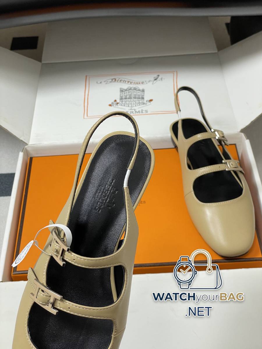 Hermes 26s new spring and summer Mila slingback sandals series H buckle Mary Jane shoes H letter diamond buckle two-strap flat bottom sandals with small square toe design are classic and fashionable, with Hapi shoe buckles. It can visually lengthen the leg lines and make the feet look more slender. There is a slender shoelace on the upper, which adds to the layering and design of the shoes. The shoelaces are equipped with a delicate H metal buckle/rhinestone buckle decoration, which adds a touch of highlights and fashion to the overall look. The overall style of this pair of shoes is simple yet elegant, blending classic and fashionable elements. The main color makes it very versatile, whether it is paired with formal clothing or casual clothing, it can show different style charms. Upper: Calfskin Lining Foot: Lambskin Sole: Italian A-grade genuine leather Outsole Size: 35-39 (40.41 customized, non-returnable)