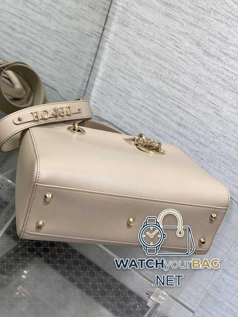 Large Lady D-Sire cowhide grain pattern series, sweet and cool style, super beautiful cowhide texture, perfect silhouette cutting, black is the best fashionable color, oversized cannage pattern, with metal pendants, cool and casual yet elegant, the overall design is unique, adjustable wide shoulder straps, with letter buttons, create different styles size: 30*13*20cm