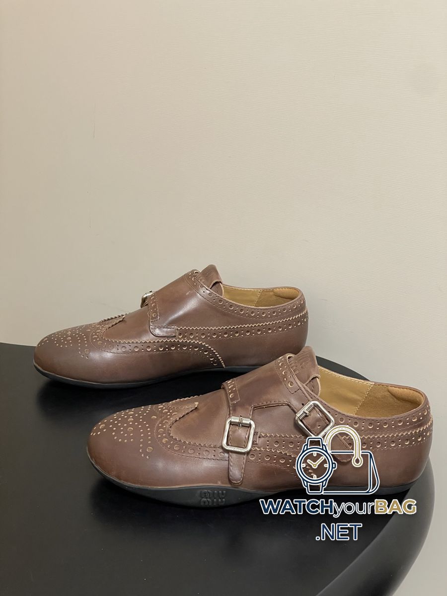 Miu Miu 26ss Miu Miu spring and summer new catwalk model Brogue carved buckle Mary Jane moral training shoes Retro casual sports shoes are based on classic retro shoe styles. Textured leather outlines smooth lines. Retro outline metal buckles and shoelace design are cleverly integrated to break the rules and inject an uninhibited soul into the whole. Every step takes a casual and fashionable attitude. It collides with the concepts that I love at the moment, and conveys modern style~ It looks good no matter how you wear it. This summer’s fashionista’s favorite is super comfortable. Upper: imported rubbed cowhide. Lining. Foot: sheepskin. Sole: original molded rubber outsole. Size: 35-39 (40.41 custom-made, non-refundable)