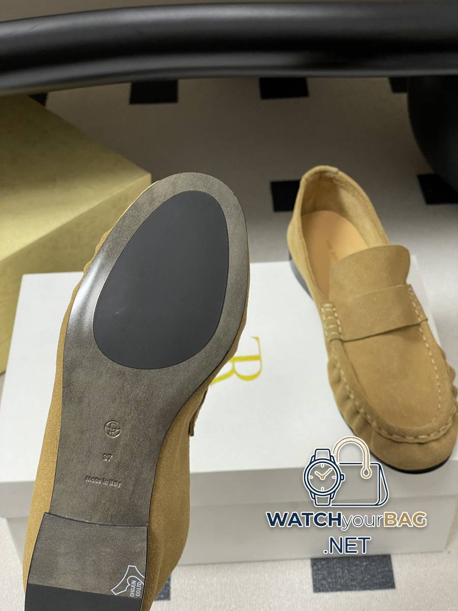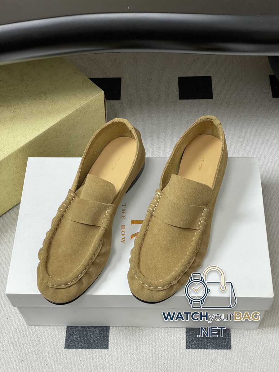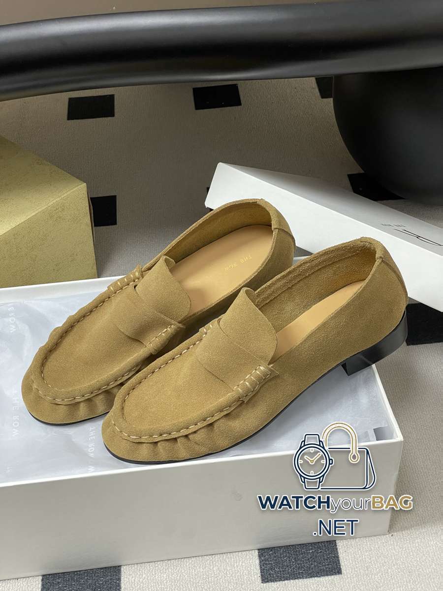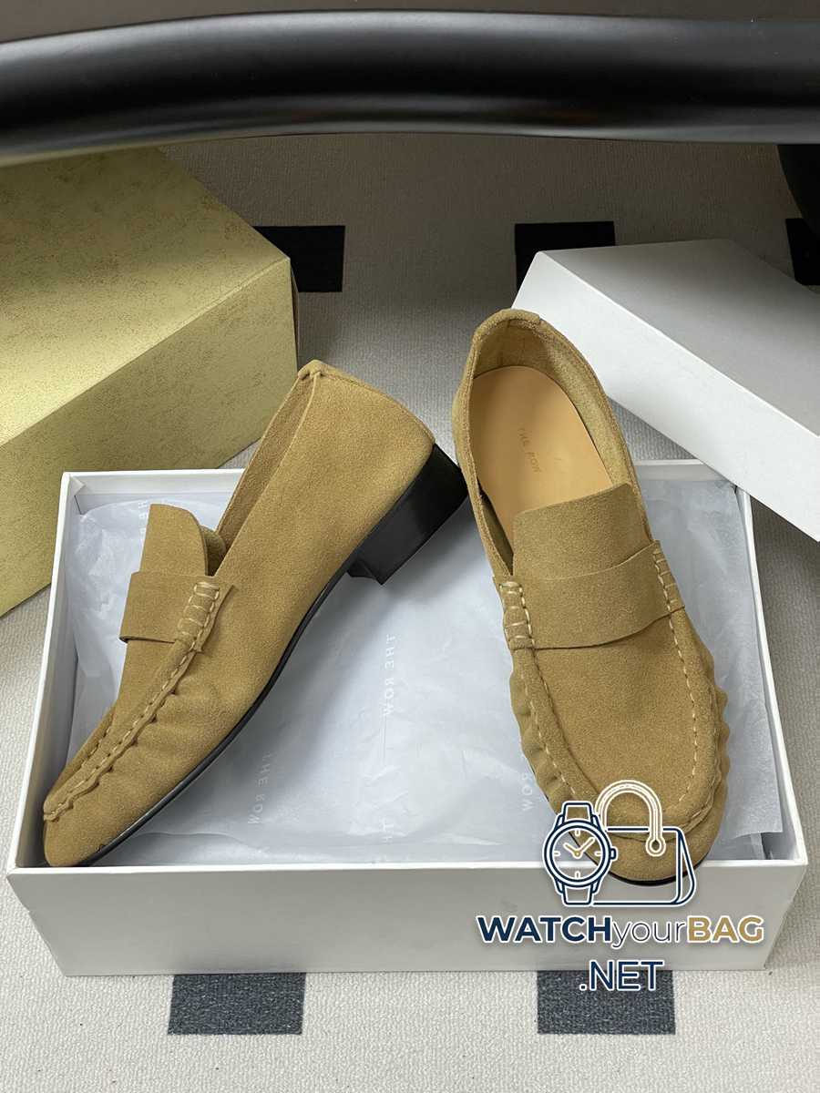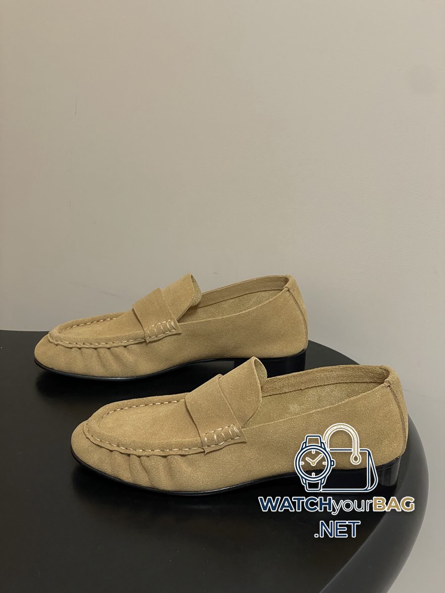 THE ROW 26Fw Spring and Summer New TR Retro Suede Loafers Wrinkled Suede Old Money Style Small Leather Shoes This pair of loafers is simply a model of minimalist aesthetics! The square toe design is neat and elegant and flatters the shape of the foot, perfectly balancing fashion and comfort. Wearing it will instantly make you full of aura. The minimalist appearance does not have too many complicated decorations, but with its smooth lines and exquisite workmanship, it has become the king of versatility in the dressing world. Pair it with jeans for a casual and comfortable look. Pair it with suit pants for a smart and neat look. Pair it with a dress to show your elegant temperament. It can be easily adapted to various occasions and you can switch between different styles freely. Upper: High mercerized cow suede lining Feet: Sheepskin Sole: Italian genuine leather Outsole Size: 35-39 (40.41 customized, non-refundable)