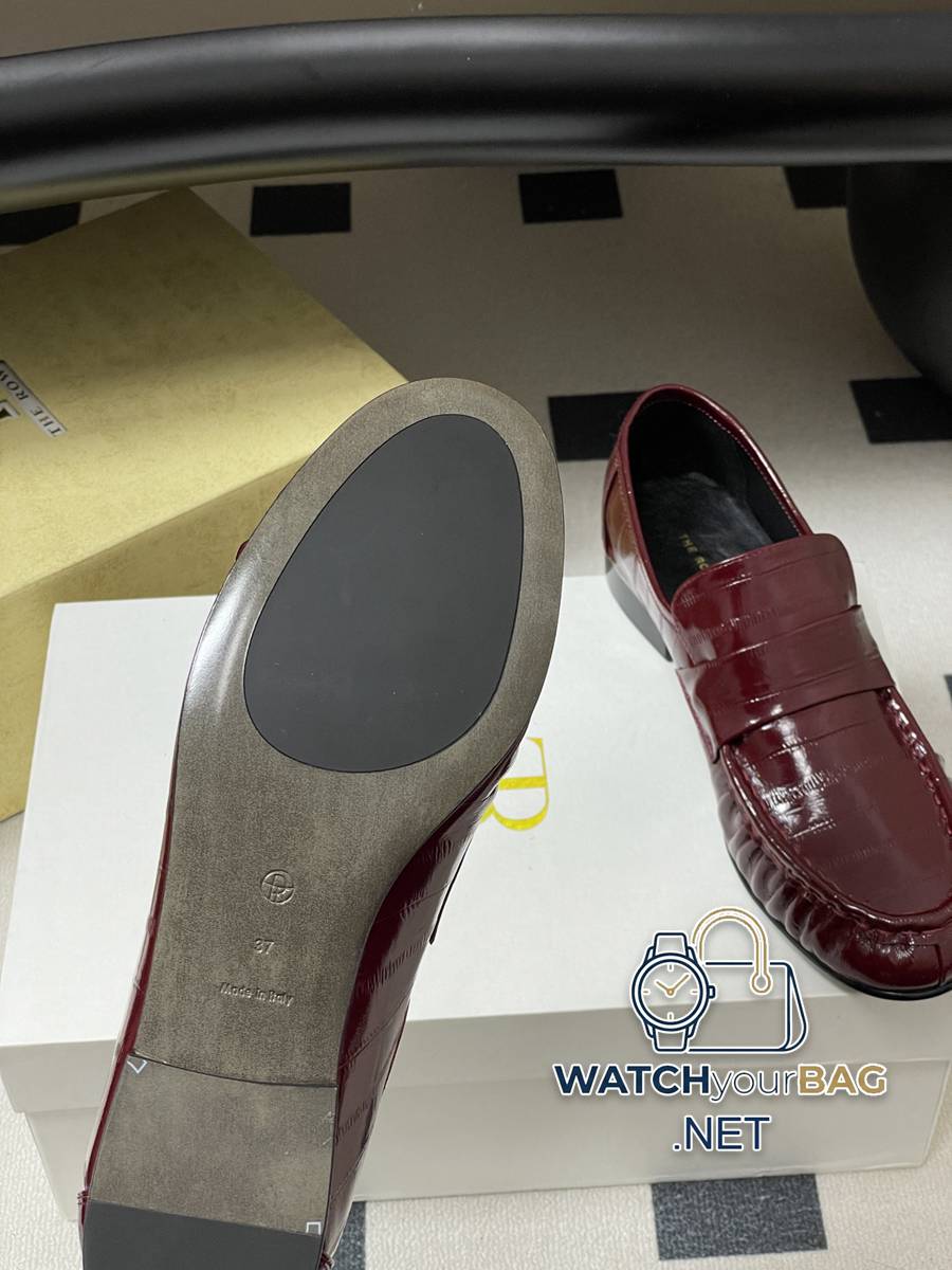 THE ROW 26Fw Spring and Summer New TR Retro Eel Leather Loafers Shiny Old Money Style Small Leather Shoes This pair of loafers is simply a model of minimalist aesthetics! The square toe design is neat and elegant and flatters the shape of the foot, perfectly balancing fashion and comfort. Wearing it will instantly make you full of aura. The minimalist appearance does not have too many complicated decorations, but with its smooth lines and exquisite workmanship, it has become the king of versatility in the dressing world. Pair it with jeans for a casual and comfortable look. Pair it with suit pants for a smart and neat look. Pair it with a dress to show your elegant temperament. It can be easily adapted to various occasions and you can switch between different styles freely. Upper: Customized eel-grain cowhide lining Foot: sheepskin Sole: Italian genuine leather Outsole Size: 35-39 (40.41 customized, non-refundable)