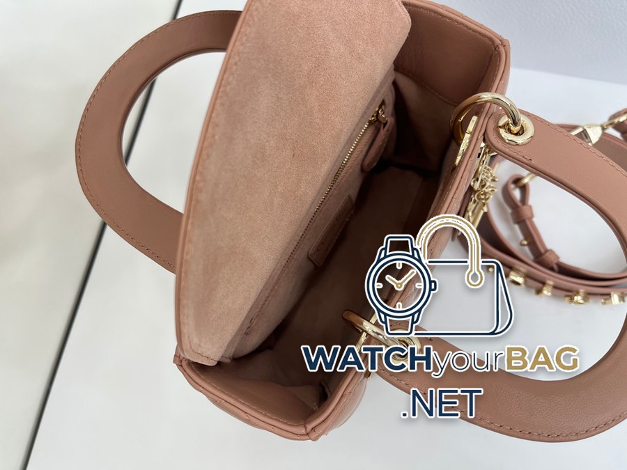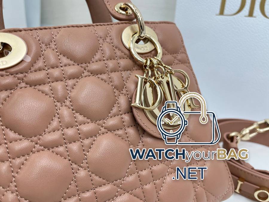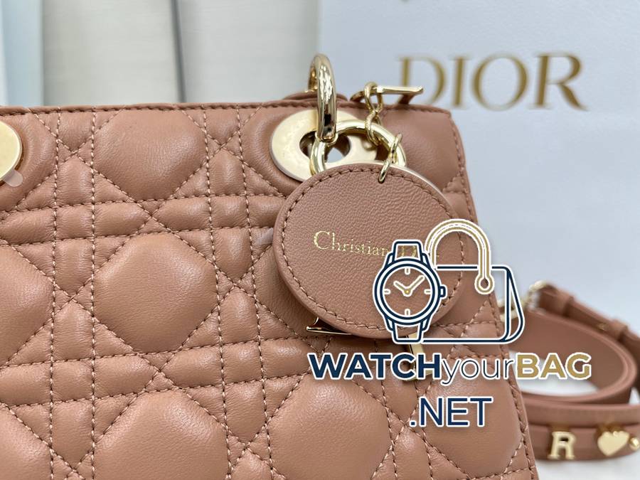(Upgraded version with lamb tendon lining) Lady Dior My ABCDior handbag embodies Dior’s profound insight into elegance and beauty. Carefully crafted from sheepskin, with cannage pattern topstitching to create eye-catching quilting details, the stylish and elegant design is timeless. Embellished with the D.I.O.R. charm in light gold-finish metal for an elegant look. Four-compartment small style with unique design. The shoulder strap can be decorated with a badge to show your personality. It can be carried by hand or cross-body. Dimensions: 20 x 17 x 8 cm