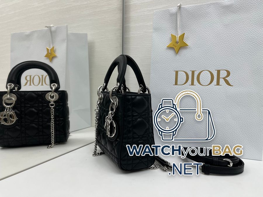 (Upgraded version with mutton tendon lining) ❤️❤️Lady Dior three-lattice black silver buckle, the classic Lady Dior bag embodies Dior’s profound insight into elegance and beauty. Carefully crafted with cannage pattern topstitching to create eye-catching quilting details, the elegant and classic design is timeless. The “D.I.O.R.” pendant in silver-finished metal adds a touch of agility to the delicate silhouette. The mini style comes with a detachable chain strap and can be carried by hand, over the shoulder or cross-body, making it an ideal companion for evening wear. Detachable chain shoulder strap, can be matched with other embroidered shoulder straps, size: 17×15×7cm, code 0057